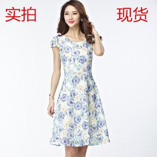 實拍代理夏裝新款大碼女裝胖MM時尚優雅印花長款網紗大擺連衣裙 /