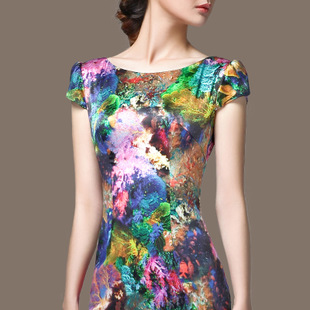 2015新款夏女裝 時尚OL氣質優雅印花大碼連衣裙 /