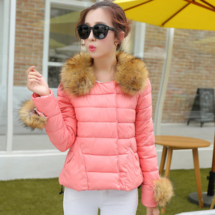 實拍2014冬季新款A字羽絨服韓版短裝可卸大毛領羽絨服女一件代發 /