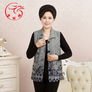 2015春秋新款中老年女裝印花馬甲 媽媽裝時尚植絨棉馬甲特價 /