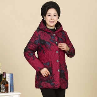中老年女裝媽媽全棉加絨連帽印花棉衣棉襖新款中年女式冬裝棉衣 /