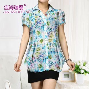 2015夏季短袖女式新款襯衫 亞麻印花襯衣女 廠家直銷大碼女裝批發 /