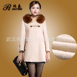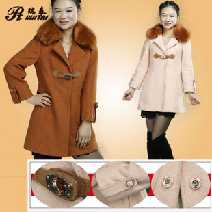 工廠直銷 2014冬裝新款大碼中年女式毛呢大衣 毛領可拆卸毛呢外套 /