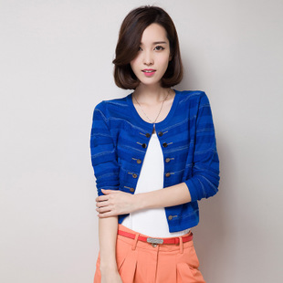 簡介: 建議零售價 ¥258.00 貨號 88038 產地 桐鄉濮院 品牌 人間故事 主圖來源 實拍有模特 貨源類別 現貨 庫存類型 整單 是否庫存 是 風格 歐美 圖案 純色 毛種類 棉類 紗線種類 羊毛 含毛量 50%以下 毛衫工藝 針織 厚薄 薄 款式 開衫 組合形式 單件套 版型 修身型 衣長 短款(40cm<衣長≤50cm) 衣門襟 單排扣 領型 圓領 袖長 長袖 袖型 常規袖 流行元素 鉚釘,立體裝飾 工藝 高溫定型 上市年份/季節 2015秋季 顏色 優雅藍,大氣黑,時尚粉 尺碼 S,XXL,L,M,XL
