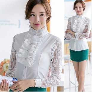 2015韓版復古蕾絲春秋款女士職業裝長袖襯衫 廠家直銷免費代發 /