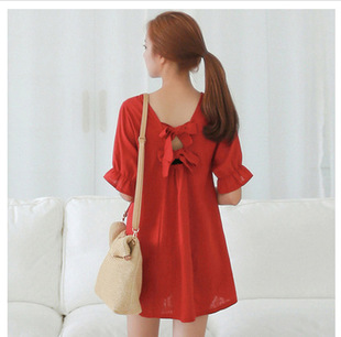 2015夏季新款背后綁帶 韓版棉麻孕婦裝連衣裙 /