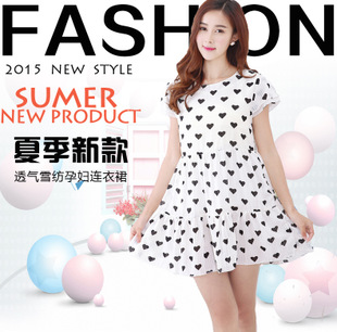 2015夏季孕婦裝短袖連衣裙韓版時尚大碼愛心印花打底衫裙子 /