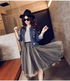 2015女裝新款韓版春夏氣質甜美潮飄逸網紗拼接百褶過膝蓬蓬半身裙 /