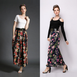 花色歐美闊腿褲 歐洲站2015夏季新款時尚大牌氣質(zhì) 高腰褲長褲 /
