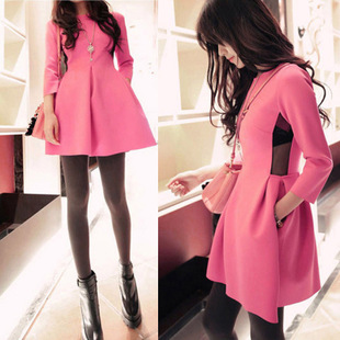 謝娜同款2015春季新款歐美女裝潮修身太空棉長袖打底裙高檔連衣裙 /