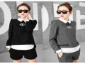 簡介: 建議零售價 ¥388.00 貨號 1001# 產地 廣州 品牌 自主品牌 主圖來源 實拍有模特 貨源類別 現貨 是否庫存 是 庫存類型 整單 風格 休閑 圖案 純色 面料 滌綸 款式 褲套裝 上衣款式 假兩件 上衣袖長 長袖 褲款式 直筒褲 褲長 短褲 流行元素 拼接 工藝 拼貼/拼接 上市年份/季節 2015春季 顏色 灰色,黑色 尺碼 XL (現貨),M (現貨),L (現貨),XXL (現貨),XXXL(現貨)
