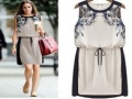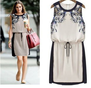 2015年歐美 印花綁帶收腰氣質連衣裙 /