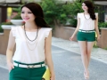 2015夏裝新款女裝時尚小香風套裝女夏季荷葉袖上衣短褲休閑套裝 /