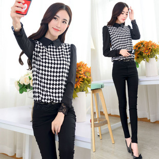 韓版大碼休閑套裝 雪紡氣質女裝 2014秋款女裝秋裝長袖長褲時尚OL /