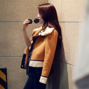 毛呢外套女2014冬新款外套加厚保暖短款毛呢外套女羊羔毛呢子大衣 /
