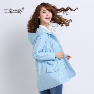 簡介: 建議零售價 ¥199.00 貨號 13826 產地 杭州 品牌 樸素 主圖來源 實拍有模特 產品類別 風衣 貨源類別 現貨 是否庫存 否 風格 韓版 圖案 刺繡 面料 全棉 成分 棉 里料 滌綸 厚薄 普通 版型 高腰型 衣長 中長款(65cm<衣長≤80cm) 領型 連帽/帽領 袖長 長袖 衣門襟 拉鏈 是否有腰帶 無腰帶 流行元素 刺繡 工藝 刺繡/繡花 上市年份/季節 2014秋季 顏色 粉色,卡其,淺藍,淺藍加棉,軍綠加棉,紅色加棉,寶藍加棉,卡其加棉,寶藍紅色刺繡加棉,淺藍中袖 尺碼 S,M,L,XL,XXL