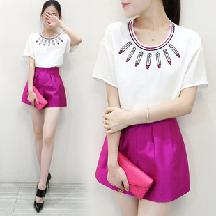 簡介: 貨號 599 產地 廣州 品牌 自主品牌 主圖來源 實拍無模特 貨源類別 現貨 是否庫存 是 庫存類型 整單 風格 休閑 圖案 純色 面料 混紡 款式 褲套裝 上衣款式 雪紡衫 上衣袖長 短袖 褲款式 闊腿褲 褲長 短褲 流行元素 拼接 工藝 拼貼/拼接 上市年份/季節 2015夏季 顏色 白色 尺碼 S,M,L,XL,XXL