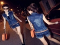 632#2014依莉兒韓版大碼修身連體短褲胖mm顯瘦 牛仔馬甲套裝 /