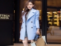 2014秋冬新款 韓版雙排扣修身顯瘦中長款長袖毛呢 /