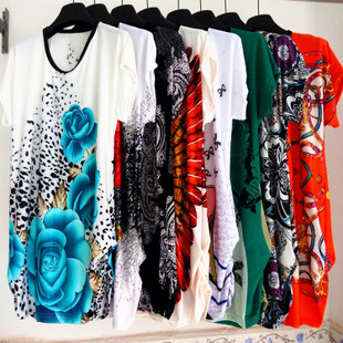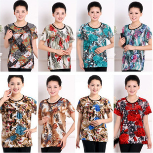 15年新款中老年女裝 夏裝休閑大碼女裝冰絲印花T恤媽媽裝地攤貨源 /