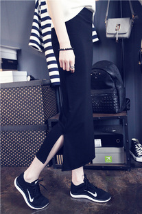 春裝韓版彈力羅馬布黑色包臀裙半身裙高腰開叉一步裙長裙批發 /