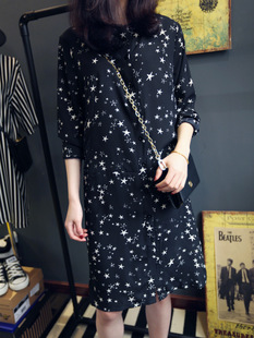 韓版立領星星雪紡襯衫中長款寬松黑色襯衣長袖防曬連衣裙女批發 /