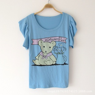 外貿原單夏裝女式上衣短袖t恤圓領泡泡袖打底衫t恤女 /