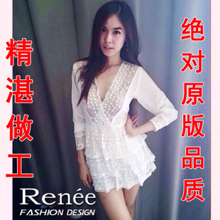 星星連體褲連衣裙泰國潮牌代購褲裙層層荷葉長袖唯美V領蕾絲 /