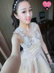 歐洲站獨家高端郭美美同款珍珠歐根紗連衣裙洋裝 優質版 /