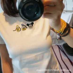 韓國短袖女 2015夏裝新款短袖女修身百搭韓版刺繡小米奇卡通t恤女 /