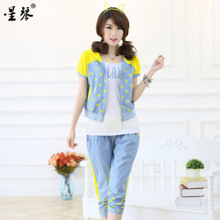 星琴 少女夏裝2014新款 套裝短袖運動休閑中學生套裝三件套 韓版 /