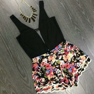 2015年速賣通EBAY亞馬遜熱賣 露胸花布性感連體褲 /