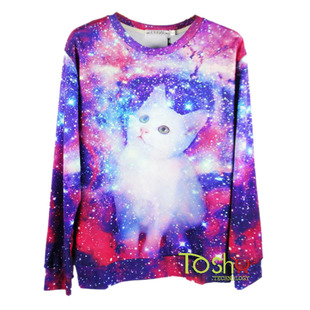 2015春秋新款卡通人物星空夜景動物貓咪休閑時尚潮流套頭男式衛(wèi)衣 /