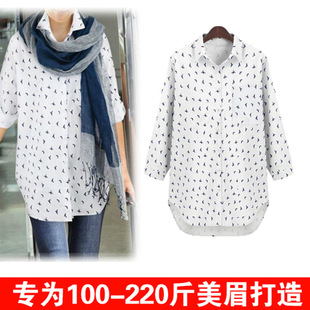 歐美大碼女裝上衣胖MM加大中長款飛鳥印花襯衣襯衫 /