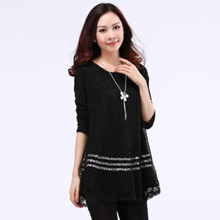 2015春季新款大碼女裝胖MM顯瘦韓版蕾絲拼接打底衫 /