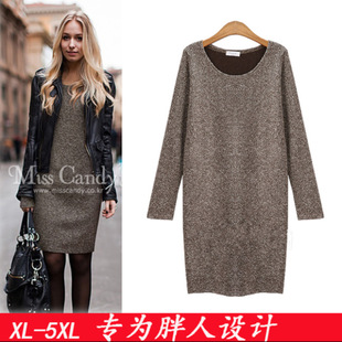 歐美大碼女裝連衣裙新款胖mm寬松圓領(lǐng)長袖連衣裙 /