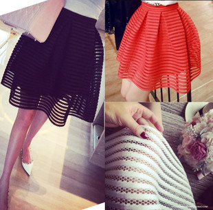 2015春夏季網(wǎng)格條紋鏤空A字高腰半身裙蓬蓬裙中裙子現(xiàn)貨批發(fā)代發(fā) /