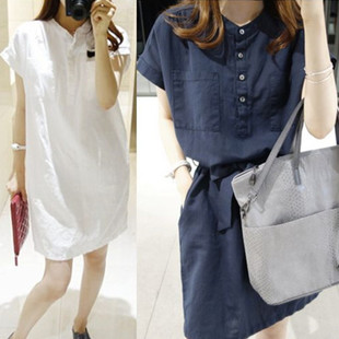2015夏裝新款收腰顯瘦中長款棉麻大碼休閑襯衫連衣裙現(xiàn)貨批發(fā)代發(fā) /