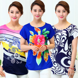 中老年T恤夏2015大碼女裝寬松休閑媽媽裝一件代發冰絲印花上衣潮 /