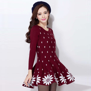 【火拼】秋冬新款精品女裝韓版大花朵中長款針織衫毛衣女 針織裙 /