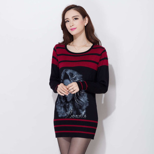 【火拼】秋冬新款精品女裝韓版美女條紋中長款針織衫 毛衣女批發 /