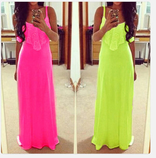 簡介: 貨源類別 現貨 主圖來源 其他來源 風格 歐美 圖案 純色 工藝 拼貼/拼接 面料名稱 外貿批發 面料主材質分類 合成纖維 面料主材質 聚酯纖維(滌綸) 面料主材質含量 10%-20% 面料次要材質分類 合成纖維 面料次要材質 聚酯纖維(滌綸) 面料次要材質含量 10%-20% 貨號 9870 品牌 伊兔酷商貿 產地 廣州 款式 吊帶款 組合形式 單件 裙長 長裙 裙型 大擺型 腰型 高腰 衣門襟 套頭 流行元素 拼接,熒光色 上市年份/季節 2015夏季 面料 蕾絲 顏色 白色,橘色,紅色,淺藍色,枚紅色,熒光黃,熒光綠 尺碼 S,M,L,XL,XXL
