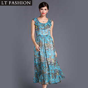 2015新款雪紡長裙 簡約印花連衣裙 品質認證 熱銷 /