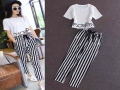 明星同款2015夏季女裝小香風短袖條紋哈倫休閑套裝一件代發 /