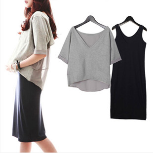 時尚百搭2015夏季女裝新款韓版拼接兩件套小清新連衣裙吊帶背心裙 /