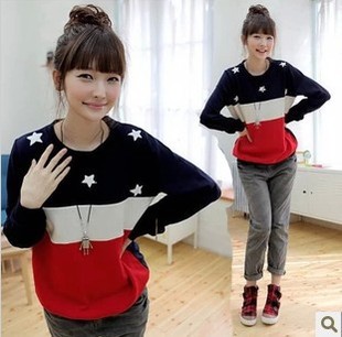 韓版潮流寬松女式衛衣 棉加厚五角星圓領印花絨衫 女裝廠家批發 /