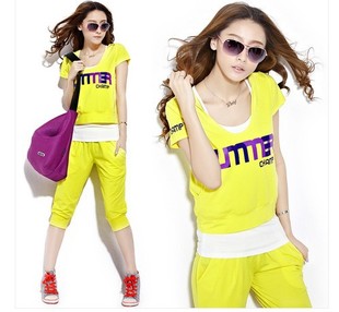 2015夏季韓版短袖七分褲大碼運動三件套女裝 /