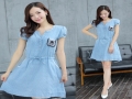 2015新款夏學生裝韓版圓點牛仔連衣裙短袖女 /