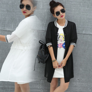 2015春夏胖mm加大碼中袖雪紡防曬服長開衫襯衫 /