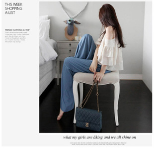 韓國代購兩件套裝連衣裙春夏新款露肩吊帶衫闊腿褲女韓版長裙 /